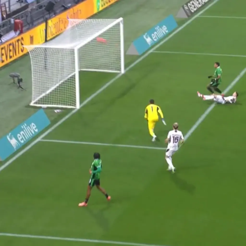 7' – Sólo Walid Cheddira sabe cómo logró golpear el travesaño, pero afortunadamente para él, se señala fuera de juego debido a la posición irregular de Laurienté. Un suspiro de alivio para el Sassuolo y su afición, ya que el delantero desperdicia una gran oportunidad al estrellarse en el larguero con la portería prácticamente abierta.