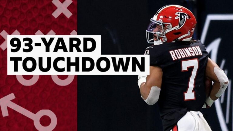 Bijan Robinson anota una carrera de touchdown de 93 yardas cuando los Atlanta Falcons vencieron a Los Angeles Rams 27-24.