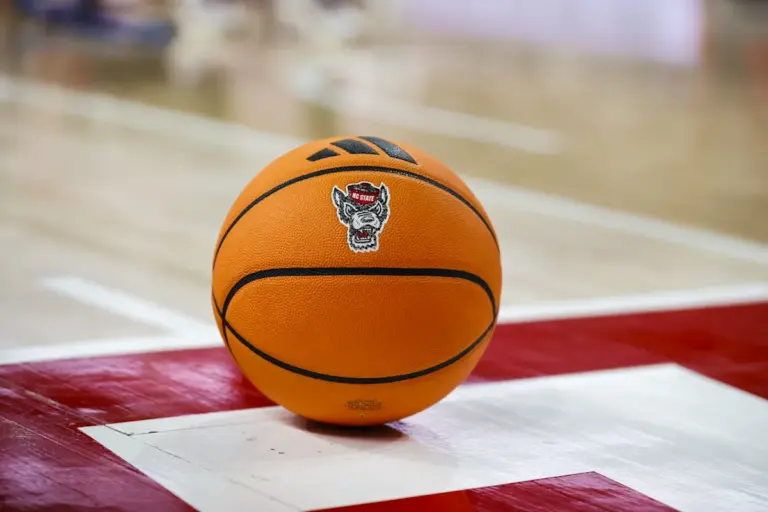 17 de enero de 2026; Raleigh, Carolina del Norte, Estados Unidos; Pelota NC State Wolfpack durante la segunda mitad del...