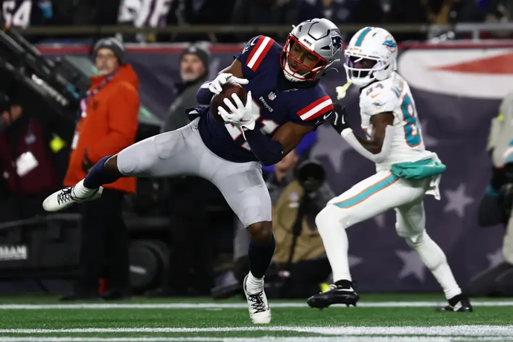 Los Patriots comenzaron a ganar el juego en el tercer cuarto y, temprano en el último cuarto, se encontraron nuevamente en la zona roja. Esta vez, sin embargo, el balón fue para el novato TreVeyon Henderson: la selección de segunda ronda cruzó la yarda 2 para aumentar la ventaja de Nueva Inglaterra.