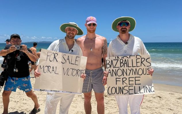 El otro cartel decía “Consejo gratuito y anónimo de los Bazballers”, una referencia al enfoque agresivo del equipo de Inglaterra en el cricket de prueba, que recibió el nombre de “Bazball” en honor a su entrenador, Brendon McCullum. Hasta ahora, este enfoque ha resultado contraproducente en Australia.