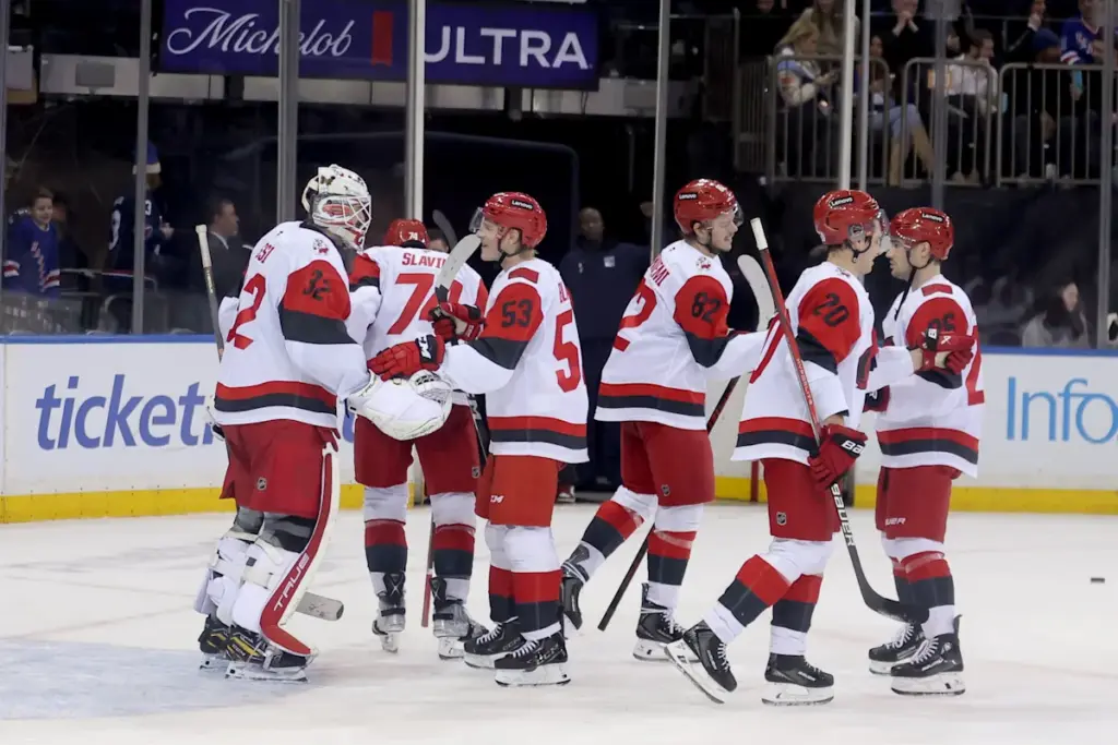 Los Carolina Hurricanes cerraron el último partido antes del receso olímpico con una nota alta al vencer 2-0 a los New York Rangers. Sin embargo, la noche fue un poco más especial de lo que parecía, ya que el portero Brandon Bussi realizó una de sus mejores actuaciones en un gran escenario.