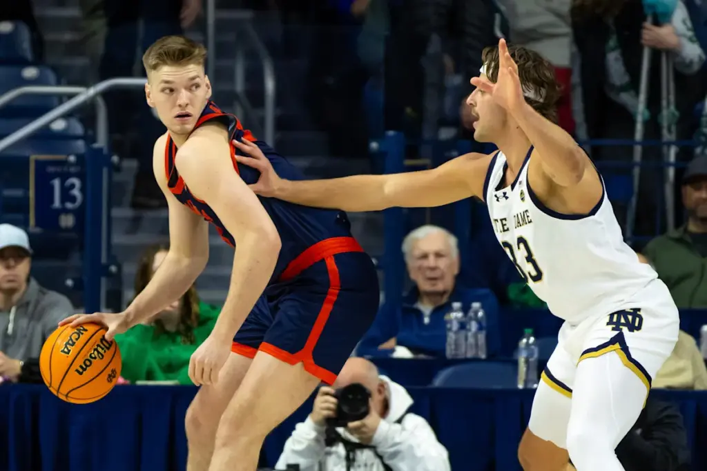 El delantero novato Thijs De Ridder lideró a los Cavaliers con 32 puntos, el máximo de su carrera, superado sólo por Cole Certa de Notre Dame, quien también registró 34 puntos, el máximo de su carrera. Lewis añadió 21 puntos para los 'Hoos, mientras que el base novato Chance Mallory añadió 17 más.
