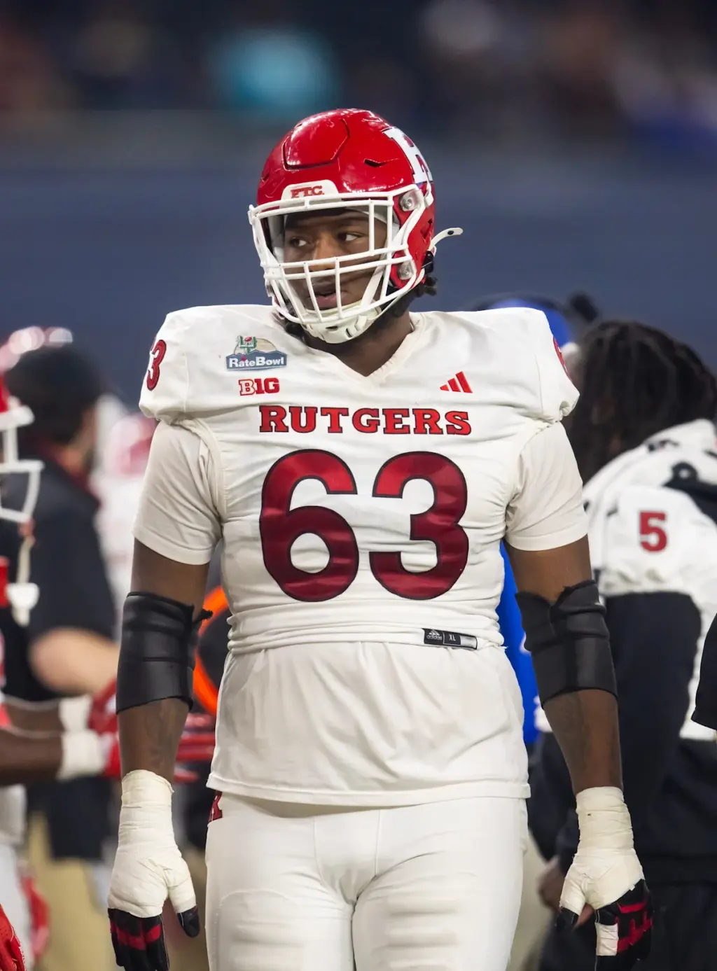 White es un tackle ofensivo enorme (6 pies 5 pulgadas, 328 libras) con 20 aperturas en su carrera, incluidas 11 la temporada pasada. En sus tres temporadas jugando en Rutgers, White fue titular como tackle derecho 15 veces y como guardia izquierdo cuatro veces. Además, White permitió sólo tres capturas en 402 jugadas de bloqueo de pases. Comenzará su temporada senior con camiseta roja cuando le queda un año de elegibilidad.