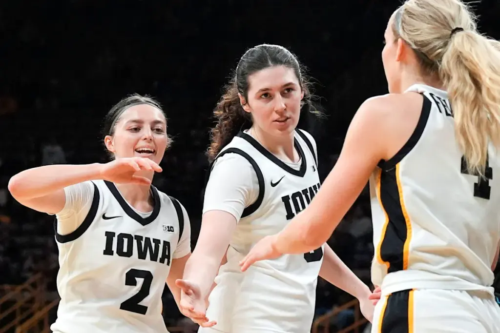 Los Hawkeyes sufrieron su primera derrota de la temporada el miércoles pasado, 74-69 ante su rival Iowa State. Las jugadoras titulares Hannah Stuelke y Ava Heiden se combinaron para anotar 18 puntos, lo que no fue suficiente contra los Cyclones. Luego, el sábado, en la victoria por 102-68 sobre Lindenwood, Stuelke (31 puntos) y Heiden (14) lanzaron un combinado de 20 de 25 tiros de campo. El oponente más duro de Iowa es: UConn.