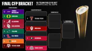 Los playoffs constan de los cinco campeones de conferencia mejor clasificados y siete equipos generales. Duke no estaba clasificado en la clasificación del martes y estaba detrás de los equipos mejor clasificados en Big Ten, Big 12 y SEC. Además, se clasificaron el ganador de la Conferencia de EE. UU., Tulane, y el ganador del Sun Belt, James Madison. También permanecerán clasificados.
