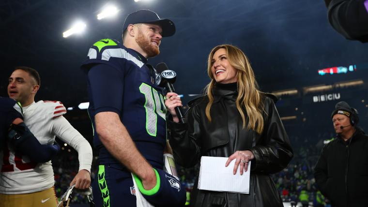 El abrigo de piel de Erin Andrews vuelve a llamar la atención durante los playoffs de la NFL en Fox
