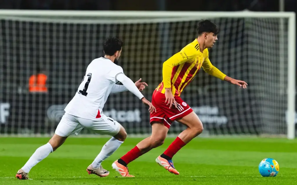 El centrocampista del Barcelona Marc Bernal vivió ayer un momento memorable cuando fue titular con Cataluña en su victoria en el partido benéfico sobre Palestina.