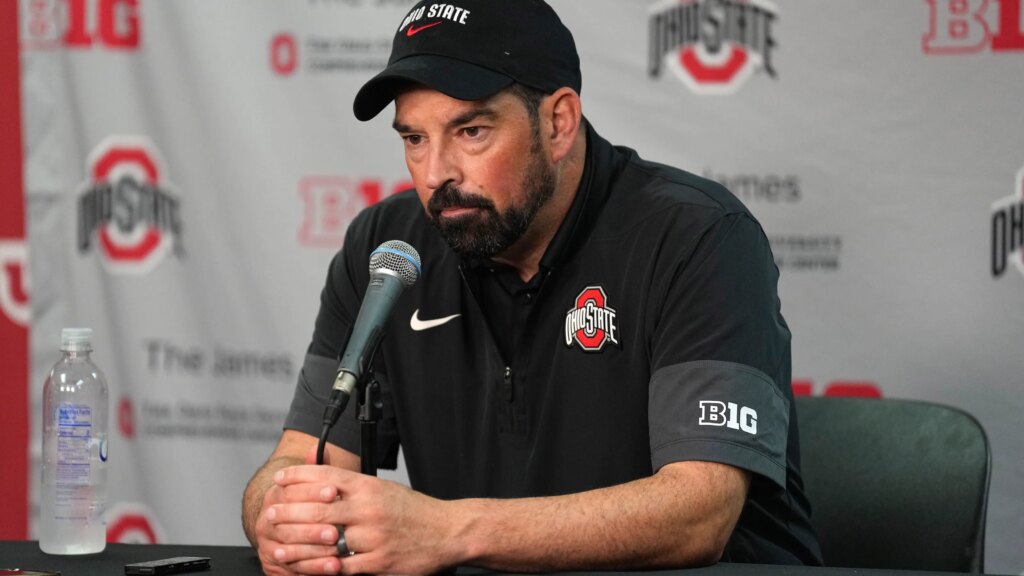 El entrenador en jefe de fútbol de Ohio State, Ryan Day, adelanta el partido contra UCLA