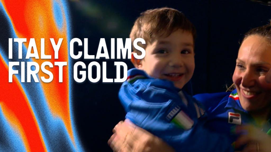 El hijo de un patinador de velocidad se une a las celebraciones cuando Italia gana el primer oro