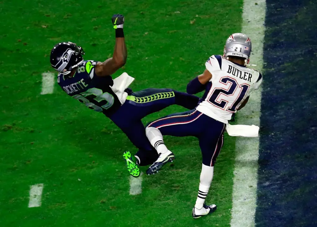 9:04 pm: Malcolm Butler intercepta a Russell Wilson en la línea de gol