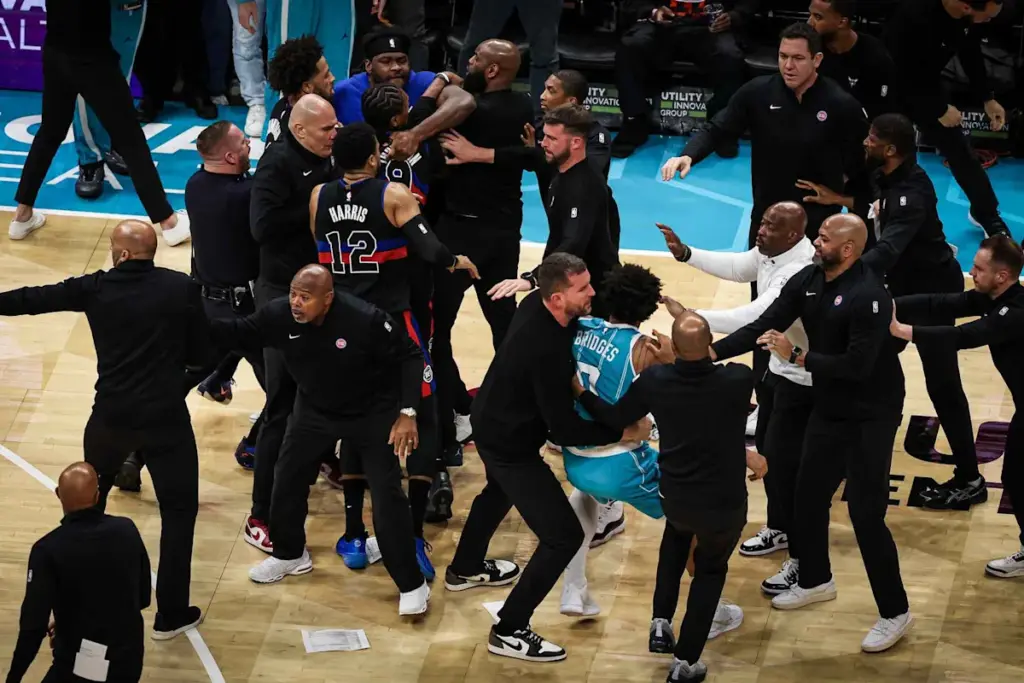 • El lunes 9 de febrero se produjo una pelea durante un partido de la NBA entre los Detroit Pistons y los Charlotte Hornets.