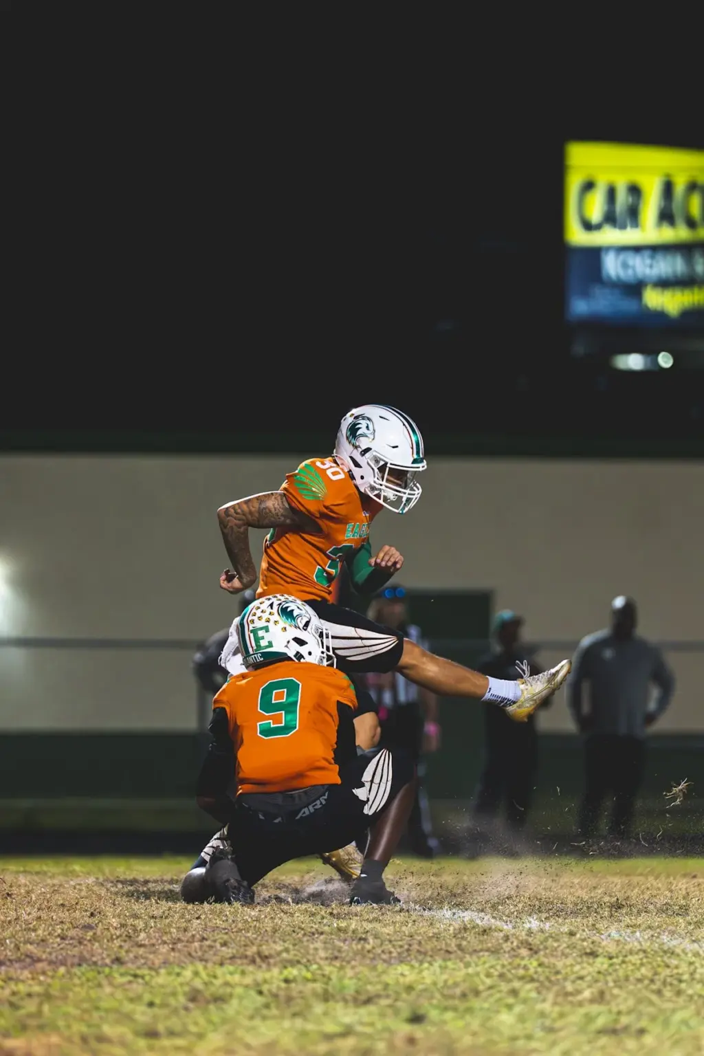 “Ha sido increíble”, dijo el entrenador de equipos especiales de Atlantic High, Todd Zimmerman. “Salió y nunca jugó al fútbol antes. Siempre estamos buscando a alguien en el fútbol que pueda tener potencial. Algunos muchachos lo tienen, otros no. Trabajó duro con entrenamiento privado. Despegó como un natural. Pero es su ética de trabajo más que cualquier otra cosa. Está atento a su técnica, es muy diligente.