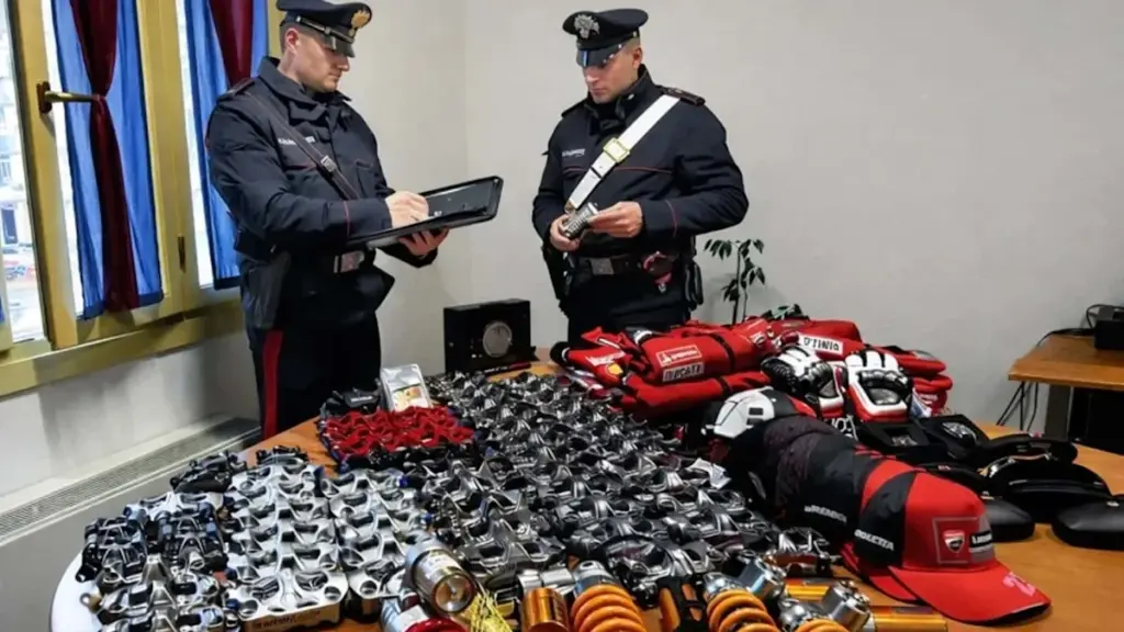 Después de que se informara el robo en noviembre pasado, la policía italiana rastreó un alijo de piezas de MotoGP y WorldSBK hasta un excontratista que trabajaba en la sede de Ducati en Borgo Panigale, donde encontraron bienes por valor de 233.685 dólares. Entre las menciones destacadas en la lista de piezas se encontraban las pinzas de freno Brembo, los kits de suspensión Öhlins, los relojes y mucha ropa oficial de Ducati Corse. Algunas prendas estaban acabadas en los colores de Enea Bastianini, lo que indica que los productos, y potencialmente las piezas, eran de las temporadas 2023 y 2024.