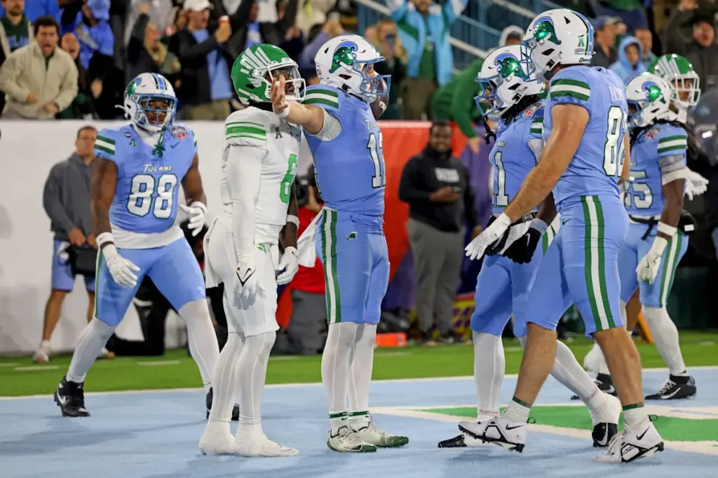 Por primera vez desde la llegada del juego por el título de la liga en 2025, fue una victoria en los playoffs de fútbol universitario. Tulane y el norte de Texas tuvieron la oportunidad de asegurar una oferta el viernes en Nueva Orleans, y Green Wave defendió su territorio para lograrlo. Tulane anotó 31 sin respuesta en Mean Green para reclamar una ventaja de 31-7 antes de finalmente arruinar el juego con 34-21.