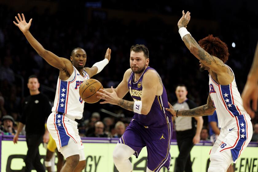 Luka Doncic abandona el partido con dolor en la pierna, eclipsando la victoria de los Lakers sobre los 76ers
