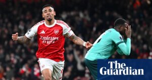 suscriptores de Arrizabalaga, Setford, Saliba, Nørgaard, Nwaneri, Trossard, Eze, Madueke, Harriman-Annous, Jesús