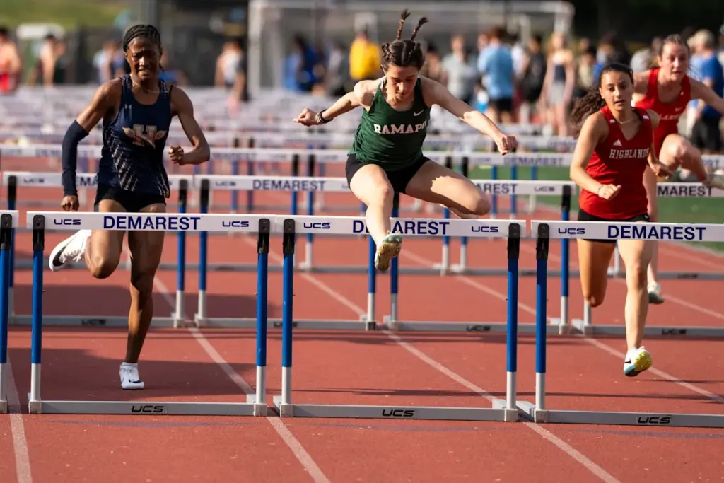 Salto con pértiga: 1. Mónaco, 12-6 (1); 2. Keiry Núñez, Dumont, Zoey Casal, Rutherford y Adrianna Ramadani, Fair Lawn, 8-6; 5. tres empatados 8-0.