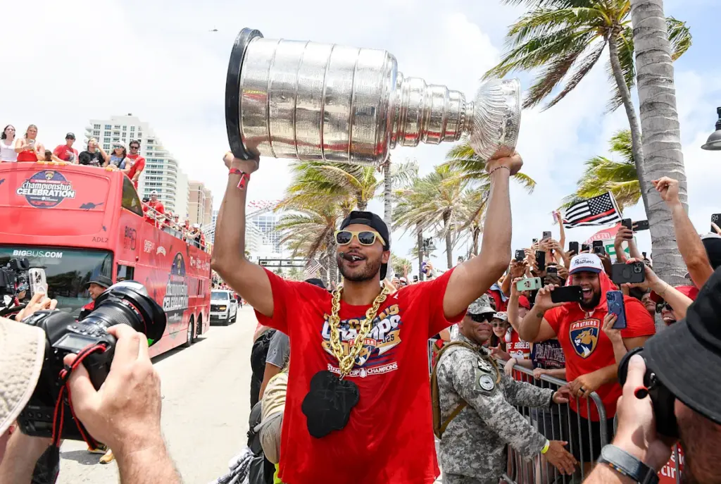 USA Hockey anunció el miércoles que el campeón de la Copa Stanley con los Florida Panthers está fuera y que su compañero defensa Jackson LaCombe de los Anaheim Ducks lo reemplazará en la lista de 25 hombres.